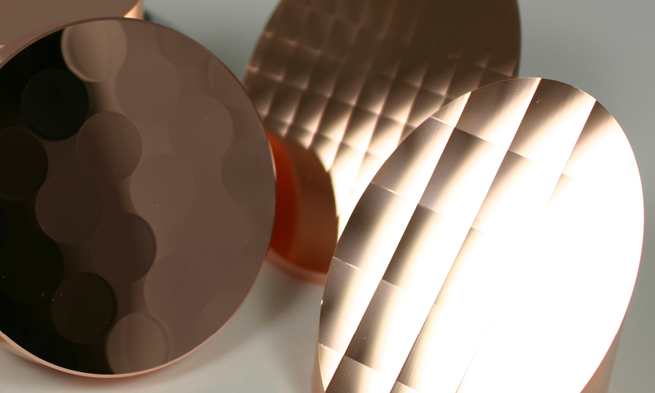 We shape the optics using traditional grinding/polishing for spherical and flat polishing, as well as cutting-edge methods like slow-tool servo diamond turning for aspheres and freeforms. We are also experts in MRF, and both sub-aperture and stressed polishing of large optics.